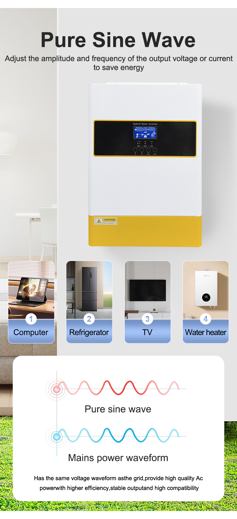 • Pure Sine Wave Output: Provides stable pure sine wave output, suitable for various sensitive devices.