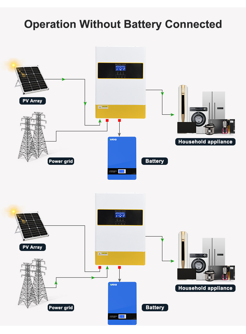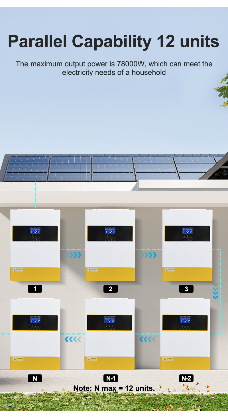 • Parallel Operation: Supports parallel operation of up to 12 units in single-phase or three-phase systems, allowing flexible expansion of the power system.