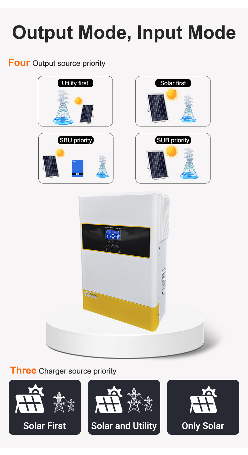 • Multiple Output Priority Support: Offers flexible power management with support for UTL, SOL, SBU, and SUB output priority settings.