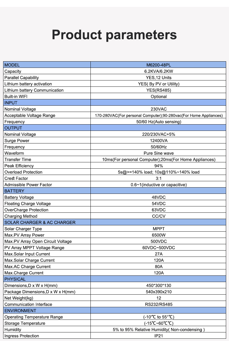 6.2KW Parallel solar inverter Features