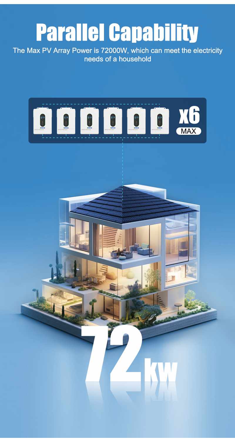 - Supports up to 6 units in parallel for higher capacity or three-phase setups