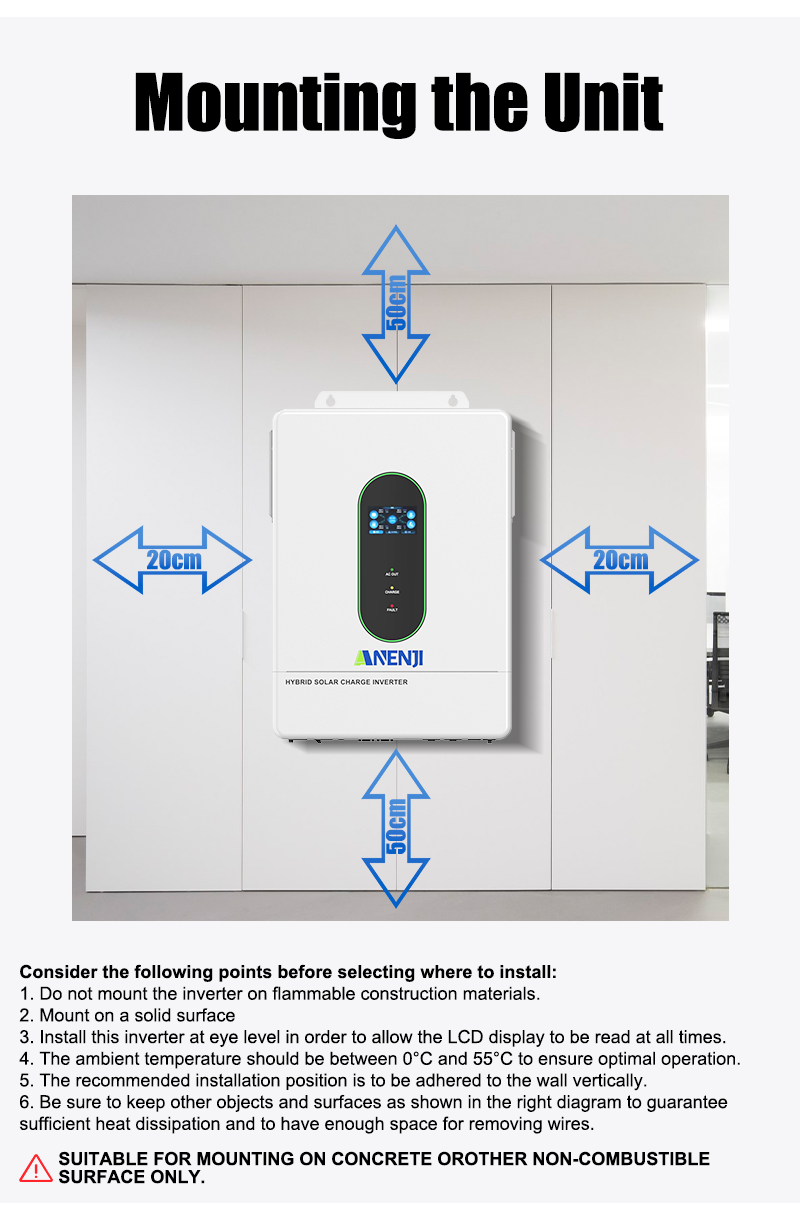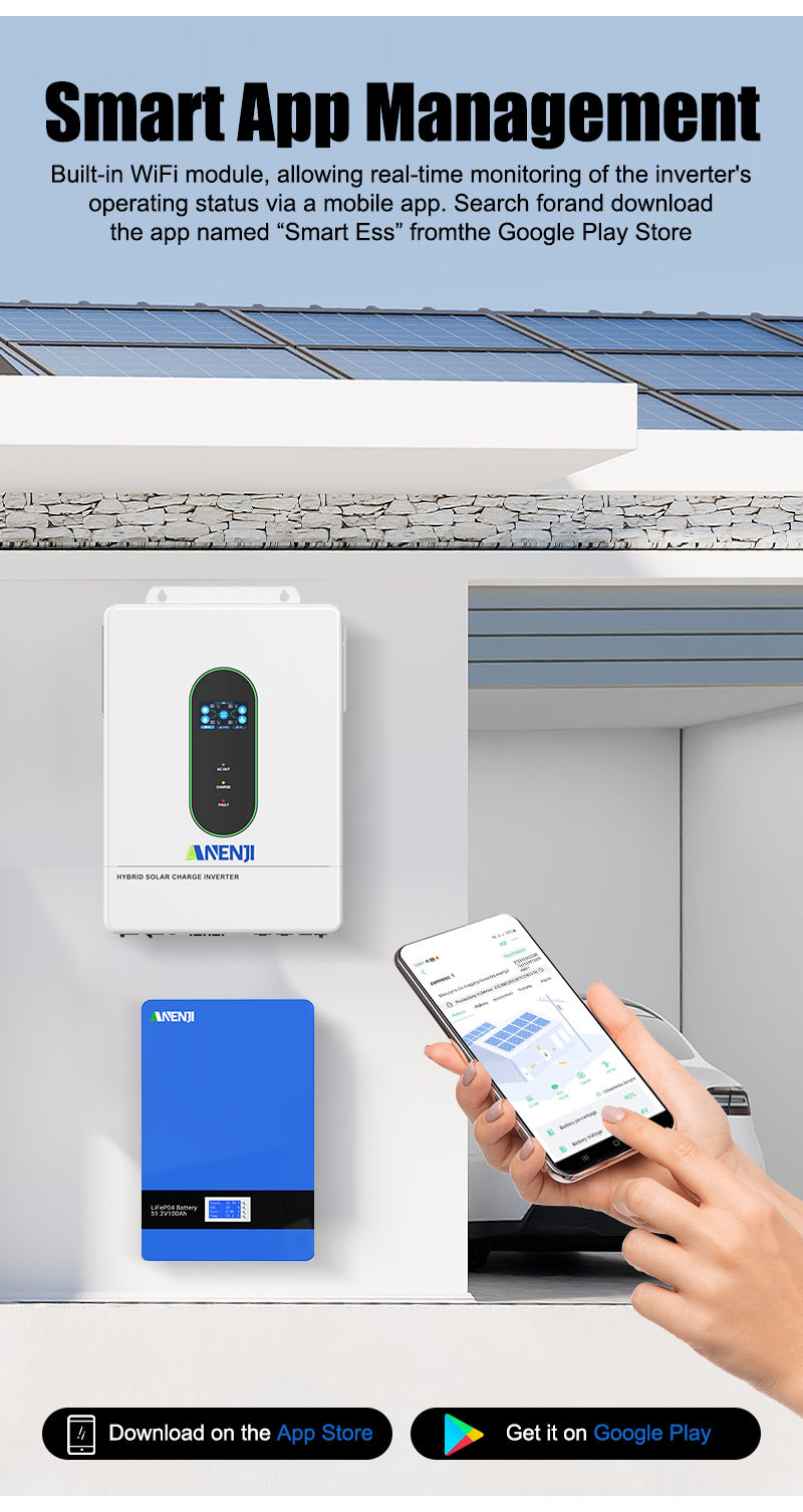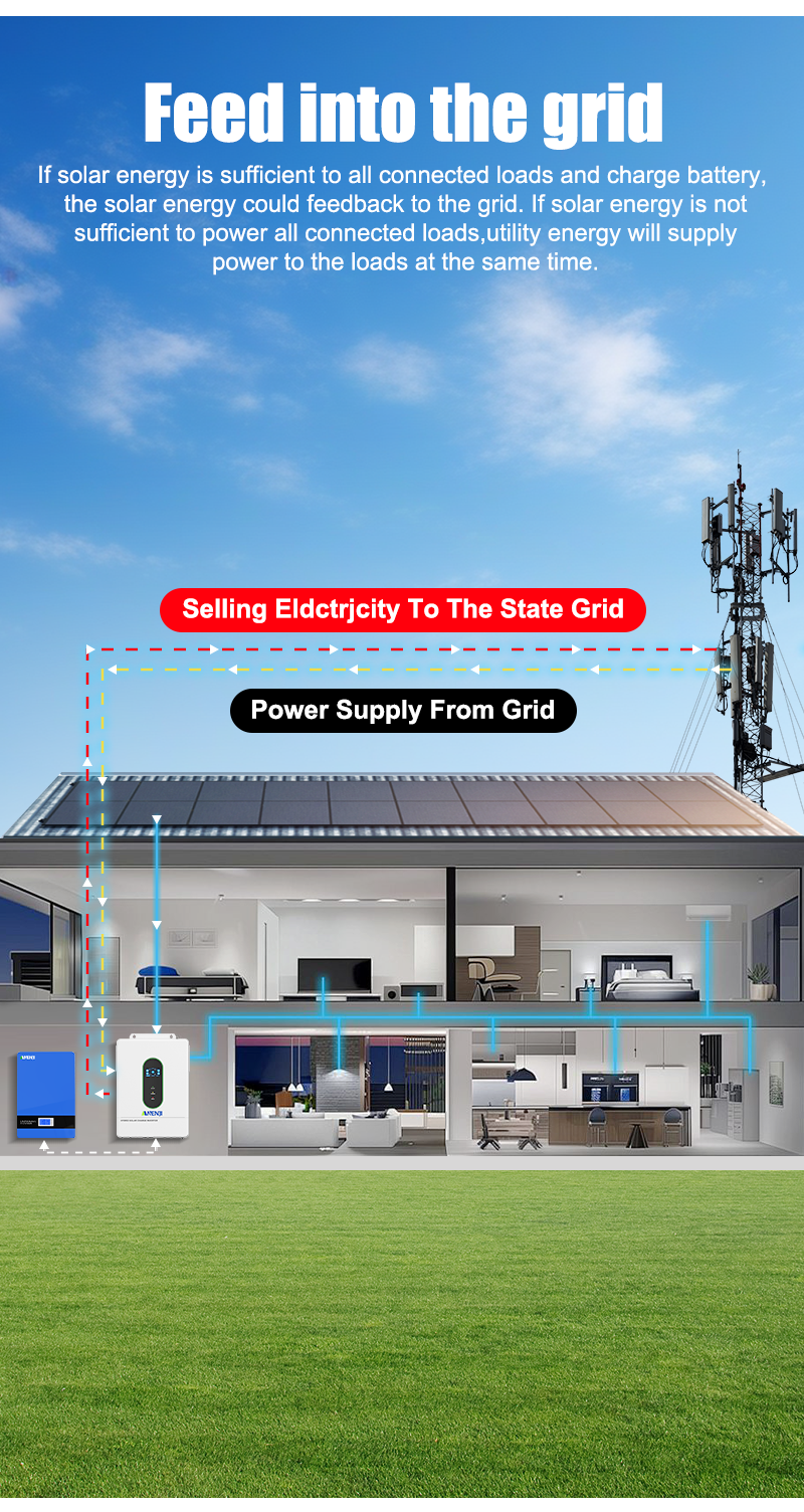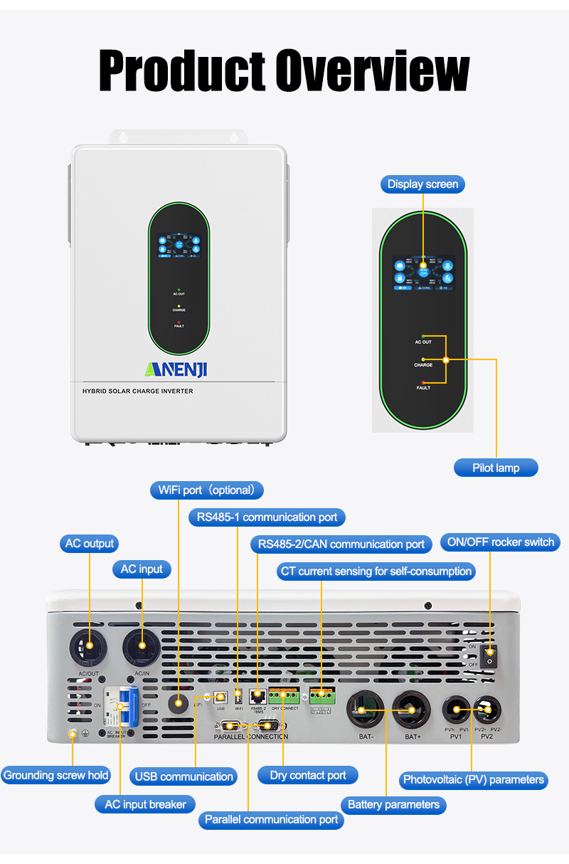 - Anti feed-in, self-consumption function (can be hybrid power supply from solar, battery, and grid).