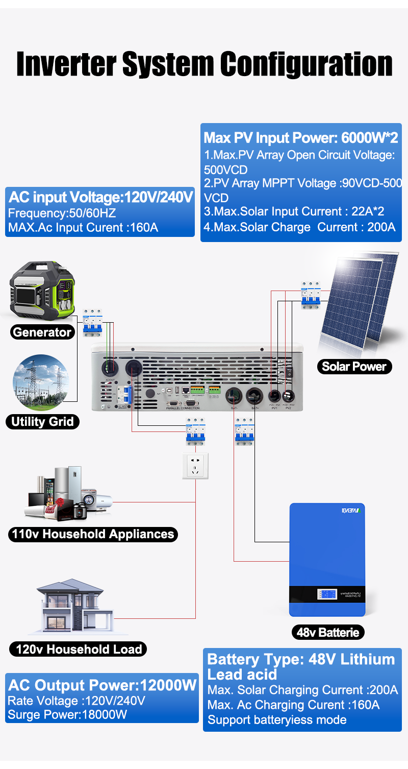 12000W 48V Hybrid split-phase Solar Charge Inverter