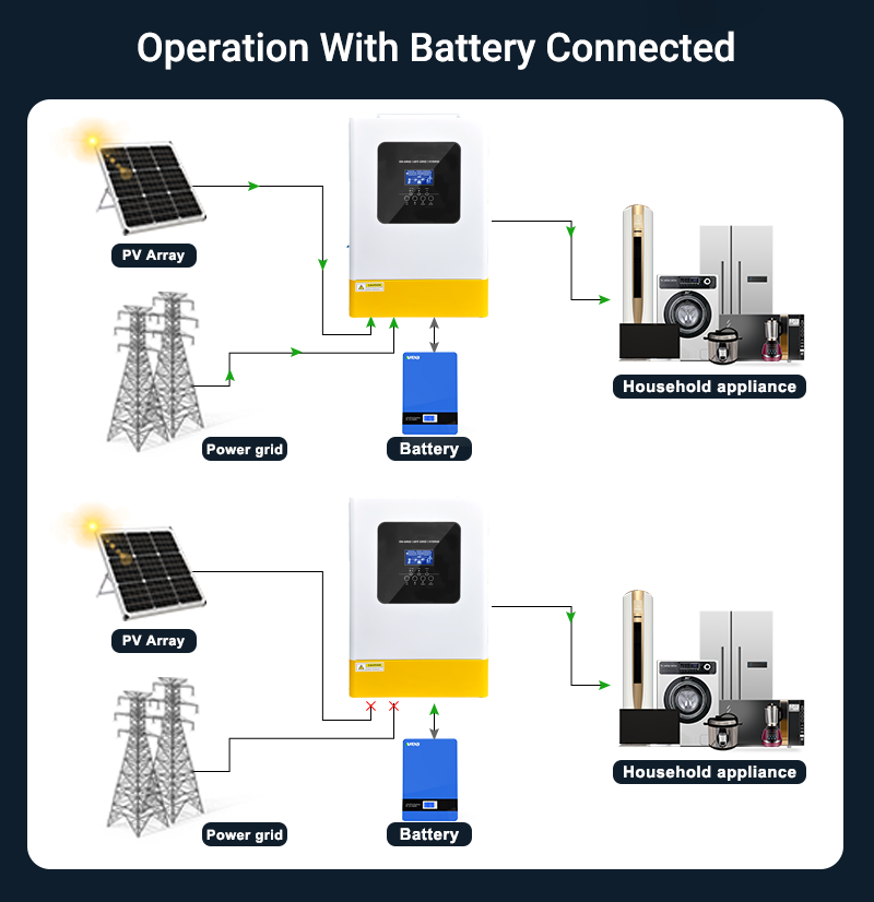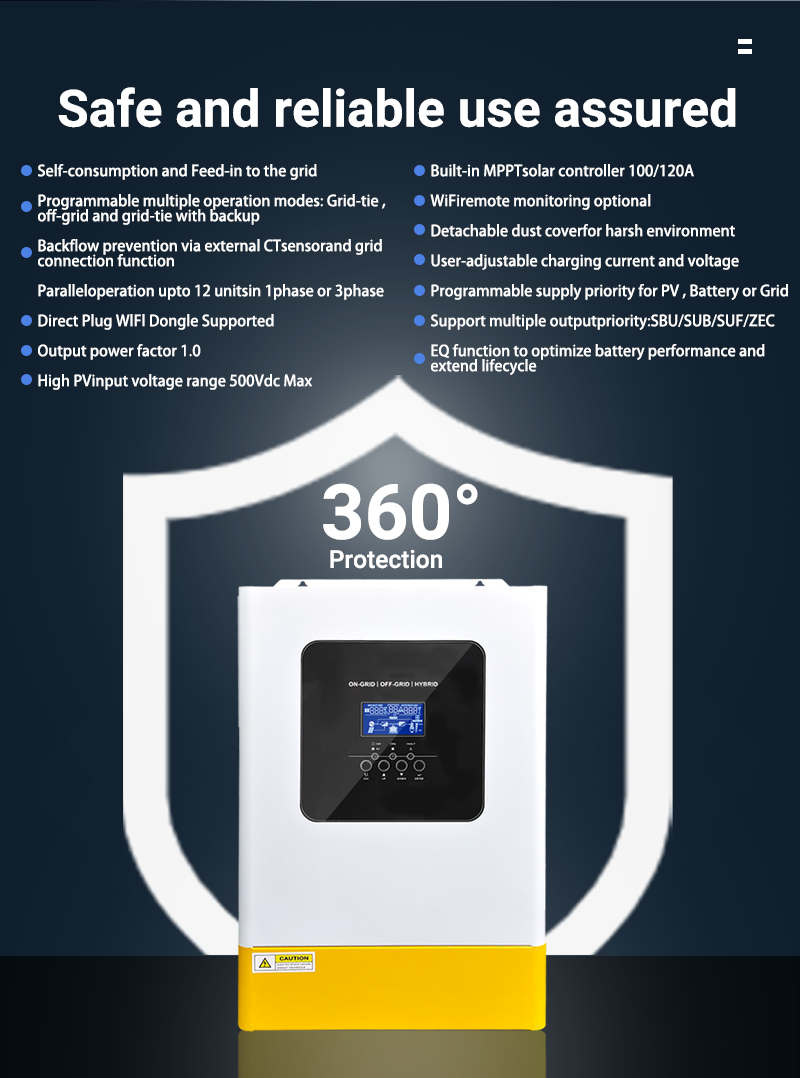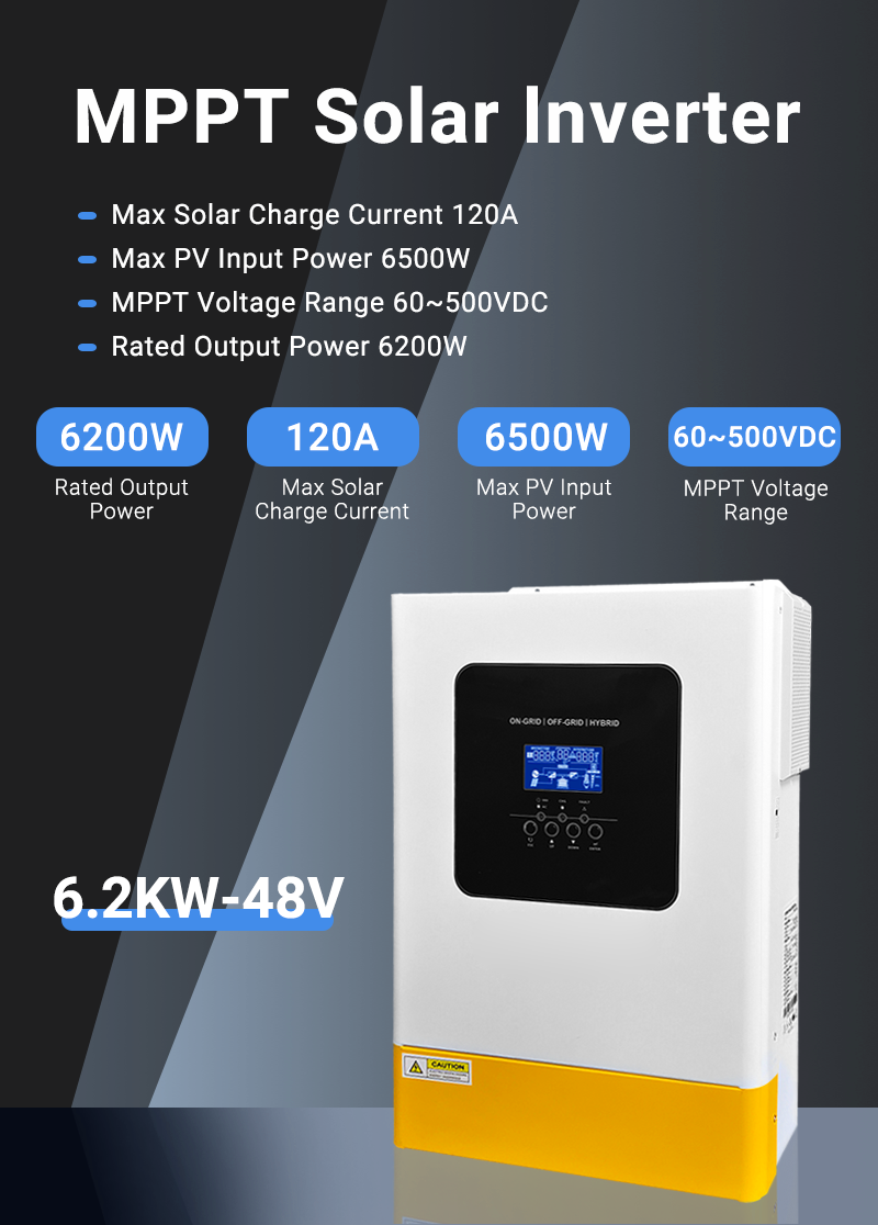 ANENJI's new product: 6.2kW 48V hybrid solar inverter with feed-in capability, parallel function, and support for three units in parallel to form a three-phase inverter. Suitable for a wide range of usage scenarios, this inverter features both off-grid and on-grid functionality. Up to 12 units can be paralleled, or three units can be connected to create an 18.6kW three-phase inverter. With stronger performance and all-in-one functionality, it’s yet another highly cost-effective solar inverter.
