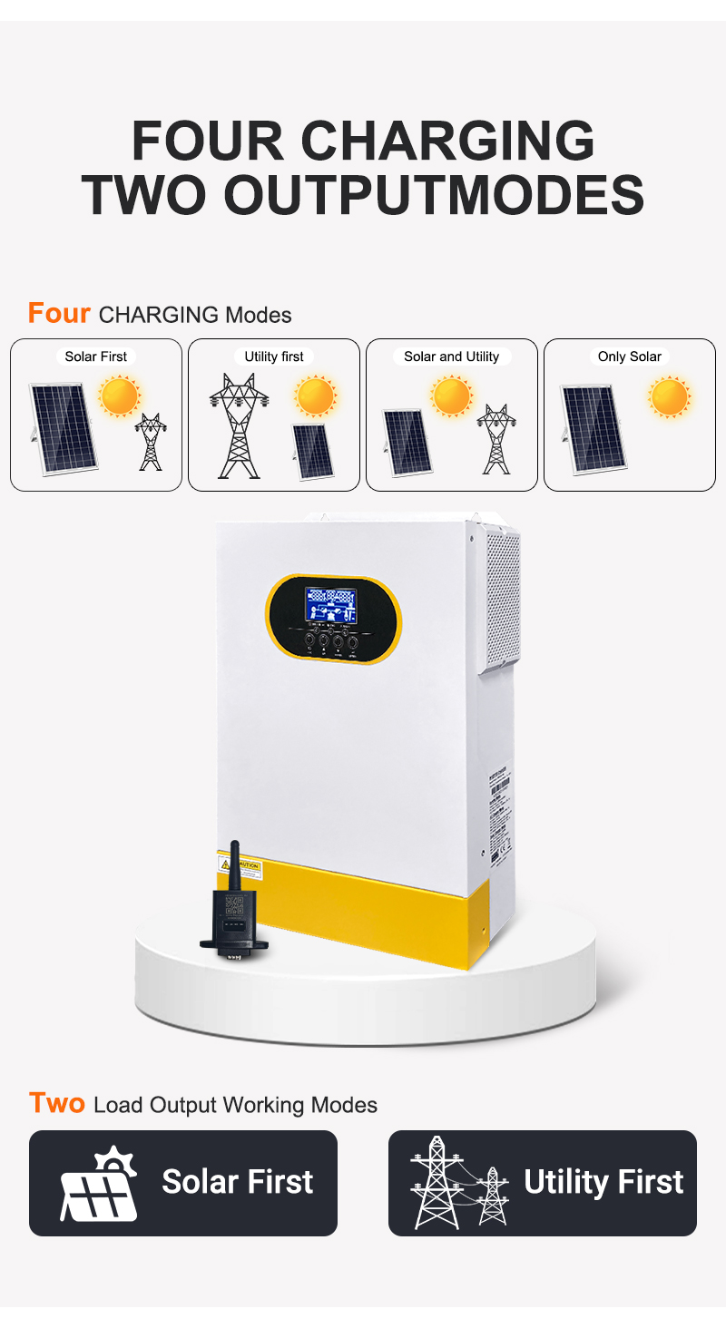 - Supports Multiple Output Priorities: Configurable output priority settings including UTL, SOL, SBU, and SUB for flexible power management.