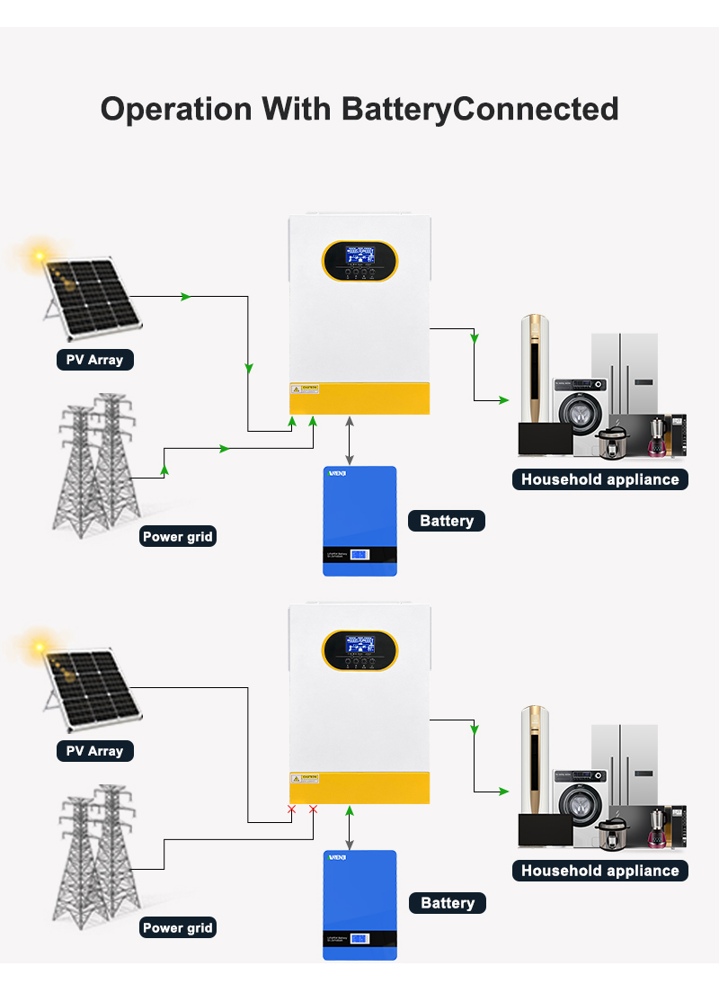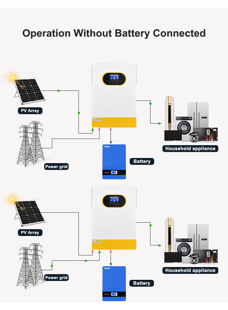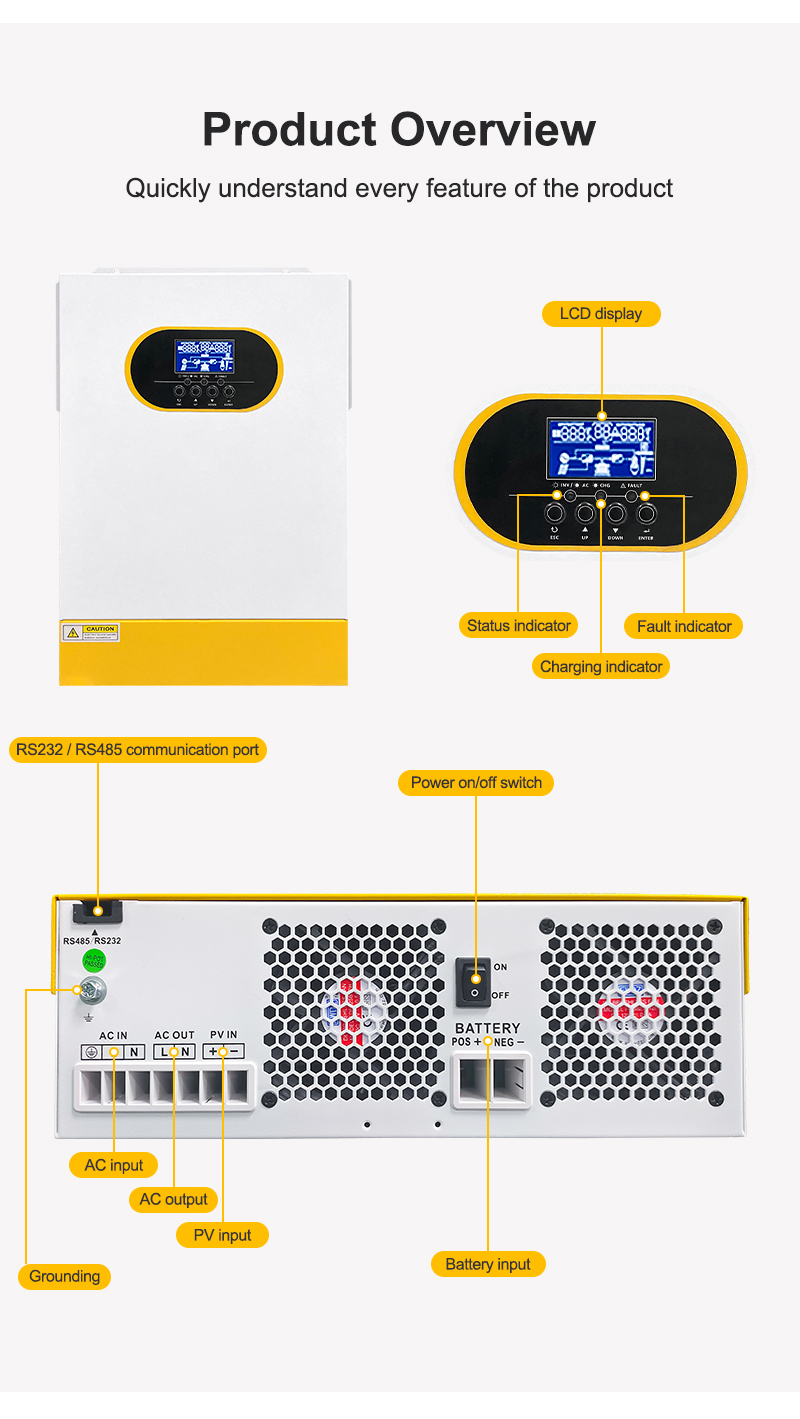 - Lithium Battery Activation Function: Can be triggered by mains or PV, ensuring efficient activation of lithium batteries.