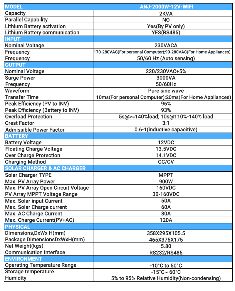 2000W 12V Solar inverter Features: