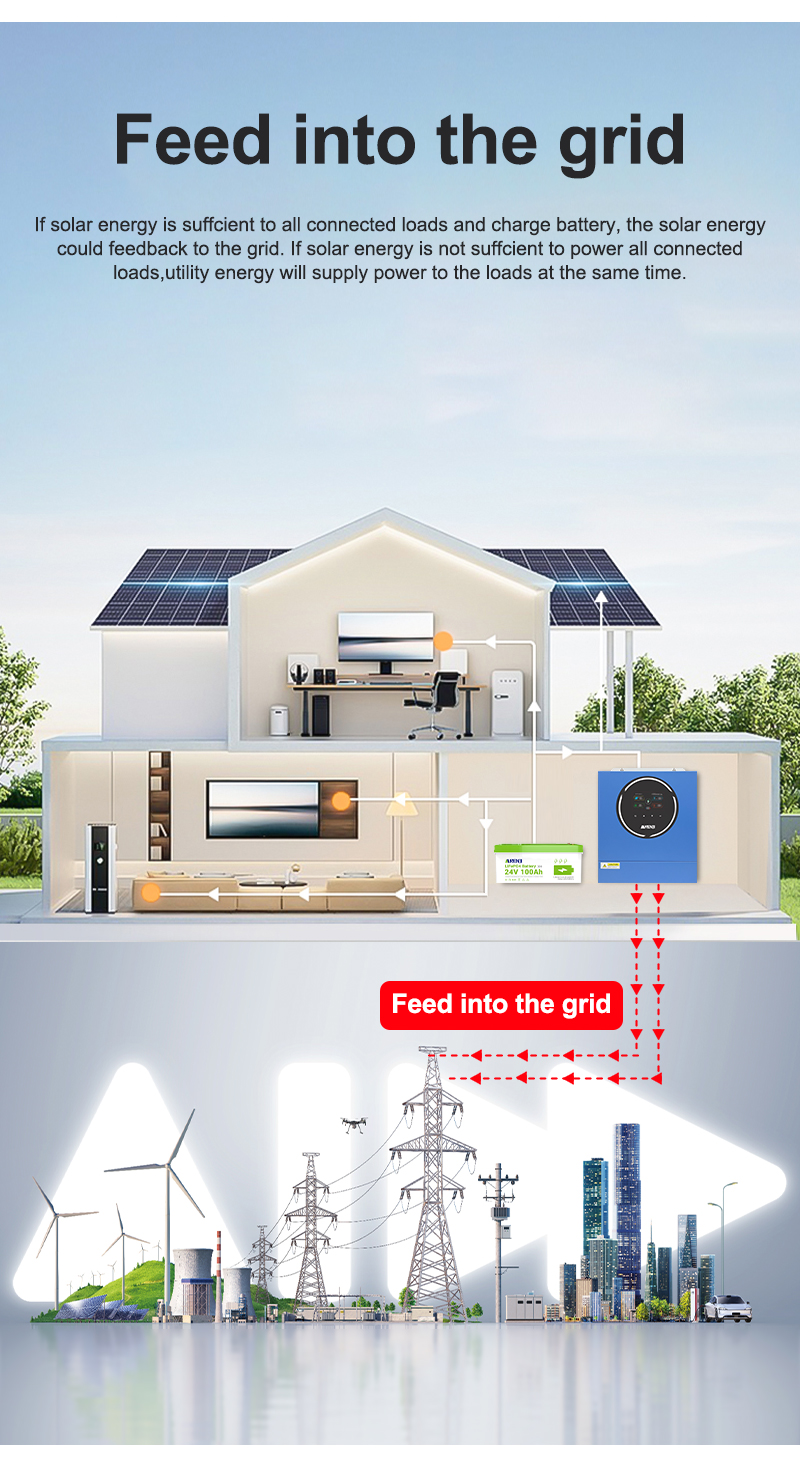 4200W 24V Dual Output Hybrid Solar Inverter Features: