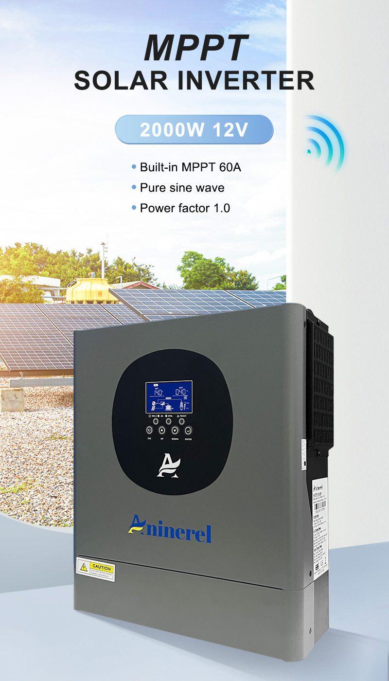 Aninerel 2000W 12V MPPT Solar Inverter 60A off-grid hybrid Pure sine wave with WIFI 230VAC Capacity 2KVA 160VDC